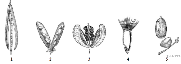 Укажите цифру, находящуюся на рисунке под изображением плода Василька синего.