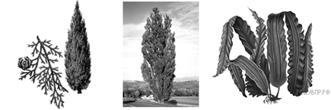 Рассмотрите изображения растений: тополь, кипарис, ламинария. Подпишите их названия под соответствующими изображениями.